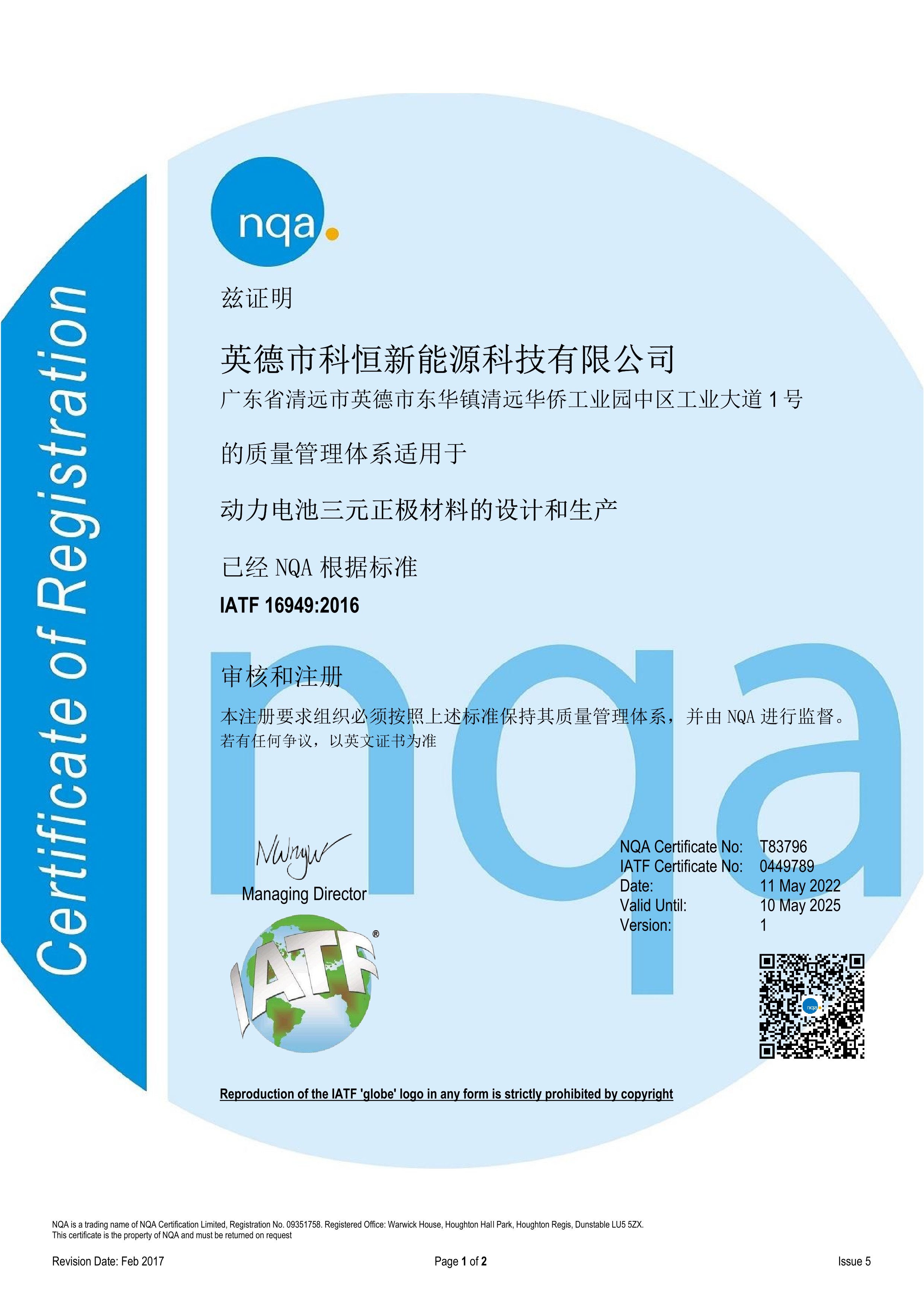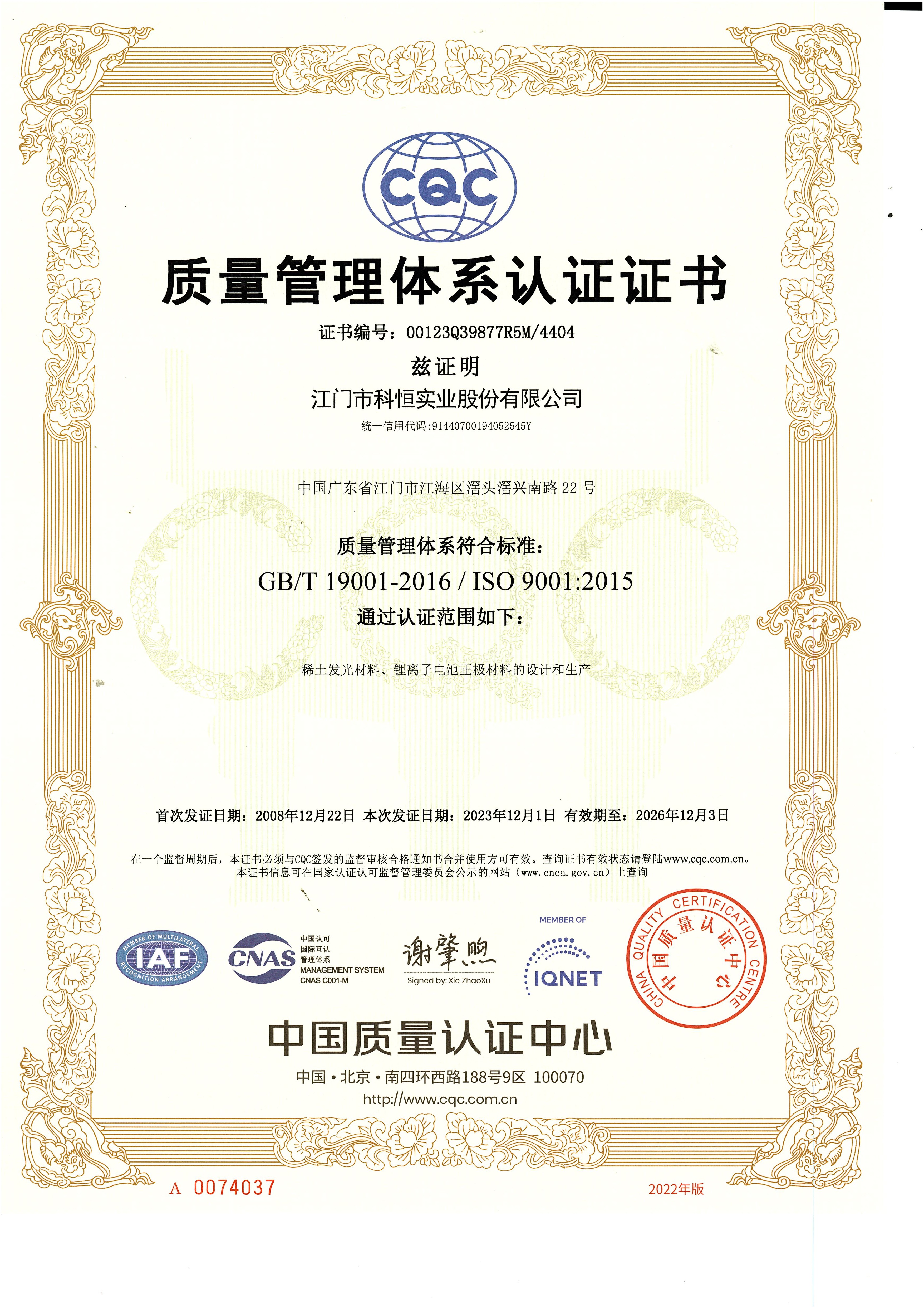 科恒堅持“科技卓越、永恒追求、質量第一、客戶至上”的質量方針,設立各級質量控制體系,保證產品質量。公司先后通過了ISO9001質量管理體系認證和ISO14001環(huán)境管理體系認證。公司以滿足客戶需求為宗旨,以卓越的科技成果、完善的制造過程,制造一流的產品、增值的服務、共享的價值,讓客戶滿意。